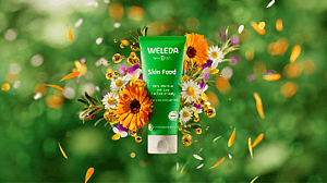 Ilustración de una mujer aplicándose Skin Food en las piernas